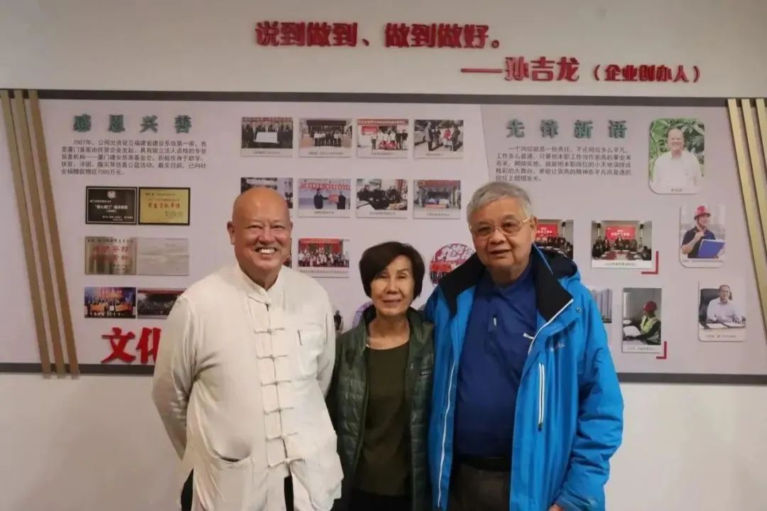 在公司領(lǐng)導(dǎo)的陪同下,孫鋮得董事長伉儷參觀了企業(yè)文化長廊。廈門建安集團(tuán)創(chuàng)辦于僑鄉(xiāng)集美,“忠公、誠毅、勤儉、創(chuàng)新”的嘉庚精神和“進(jìn)取、勤勞、開放、包容、奉獻(xiàn)”的華僑精神始終引領(lǐng)著“建安人”穩(wěn)健前行。孫鋮得董事長感嘆中國民營企業(yè)的發(fā)展得益于中國共產(chǎn)黨的正確領(lǐng)導(dǎo)和改革開放的好政策,同時也離不開企業(yè)家自身的奮斗拼搏。翻閱《十五年慈善路》刊物時,更是盛贊公司始終踐行社會責(zé)任,彰顯民營企業(yè)的使命和擔(dān)當(dāng)。