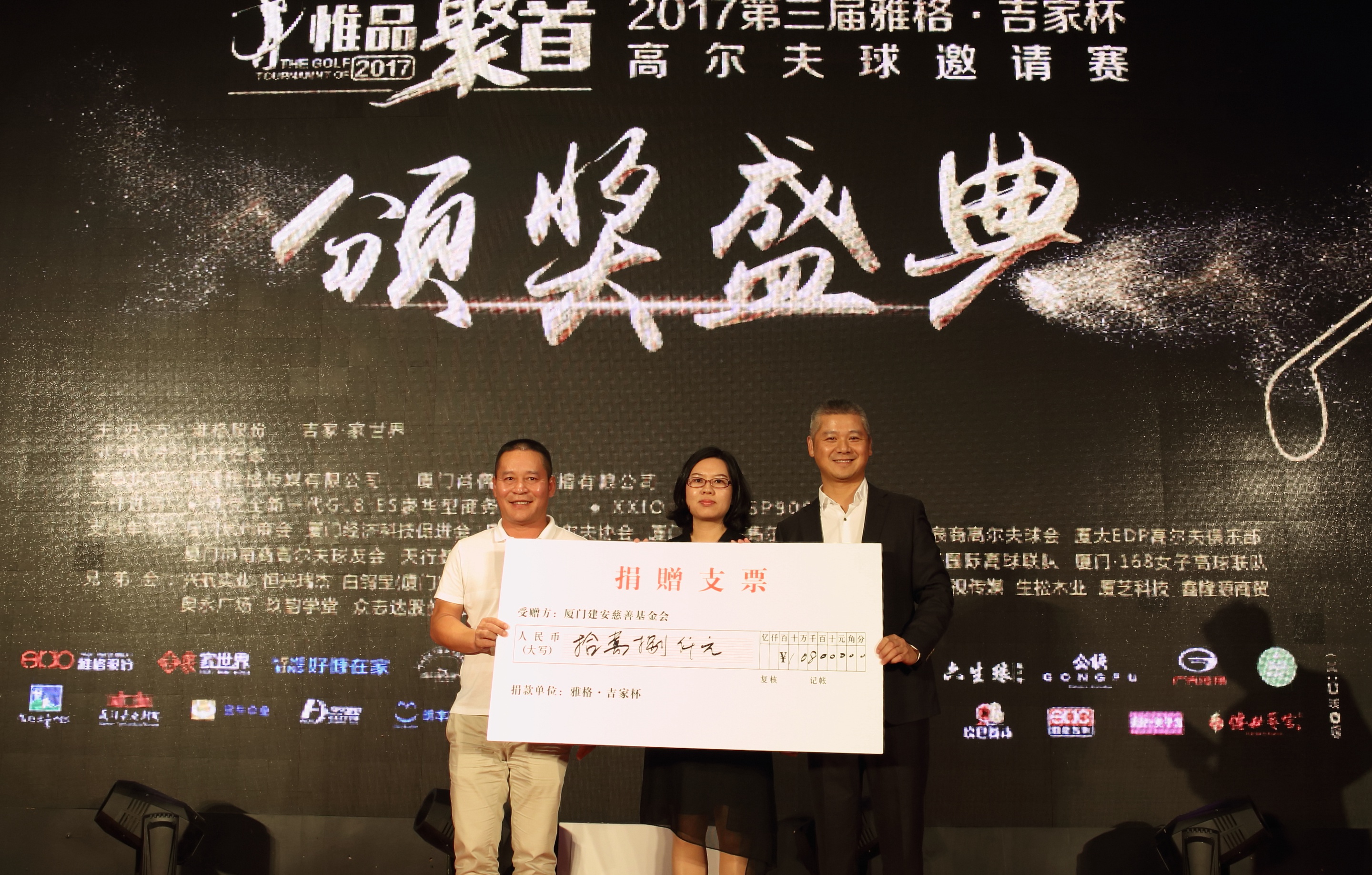 10月29日,第三屆雅格?吉家杯高爾夫球邀請(qǐng)賽頒獎(jiǎng)盛典在廈門隆重舉行。我會(huì)副理事長(zhǎng)孫碧慶、副秘書長(zhǎng)曾怡航、孫碧祿和辦公室主任葉薇出席盛典。